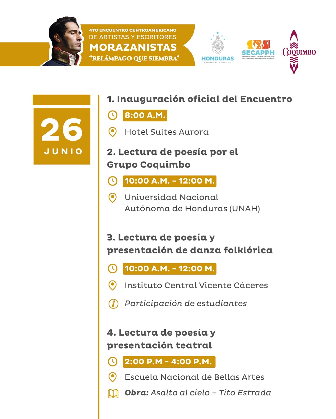 Durante esta jornada, celebramos la creatividad, el pensamiento crรญtico y el intercambio cultural entre escritores y artistas centroamericanos, inspirados en la memoria histรณrica y el legado de Morazรกn.