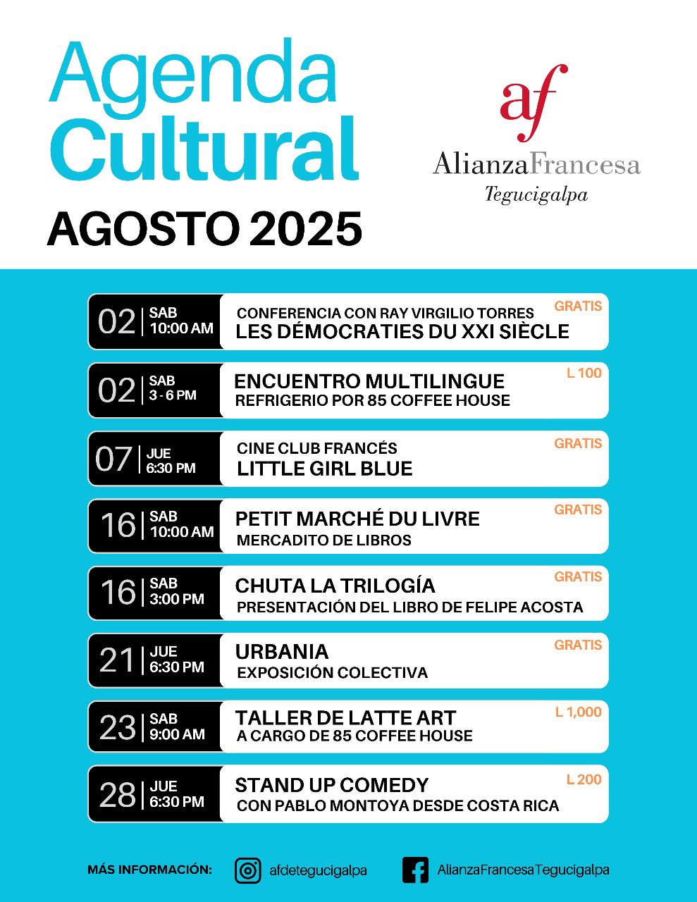 Les compartimos la agenda cultural que la Alianza Francesa de Tegucigalpa tiene preparada para agosto: