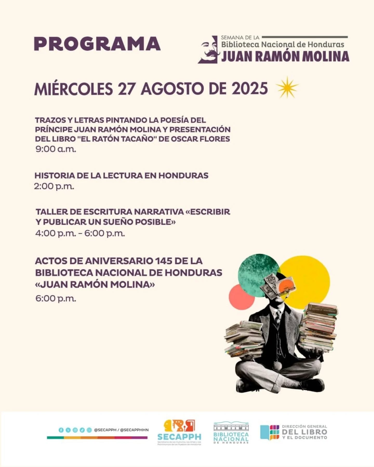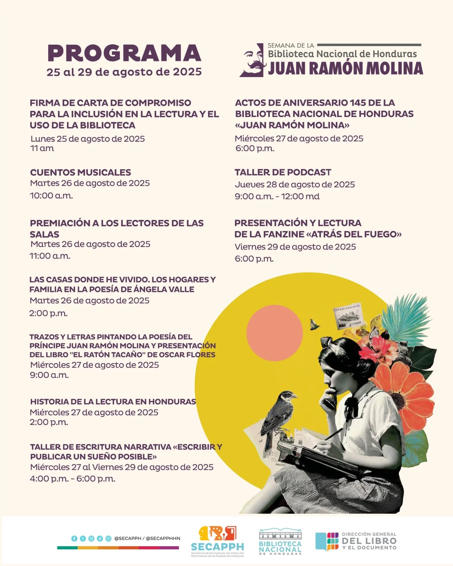 Todas las actividades están abiertas al público y se realizan en la Biblioteca Nacional "Juan Ramón Molina" 📚