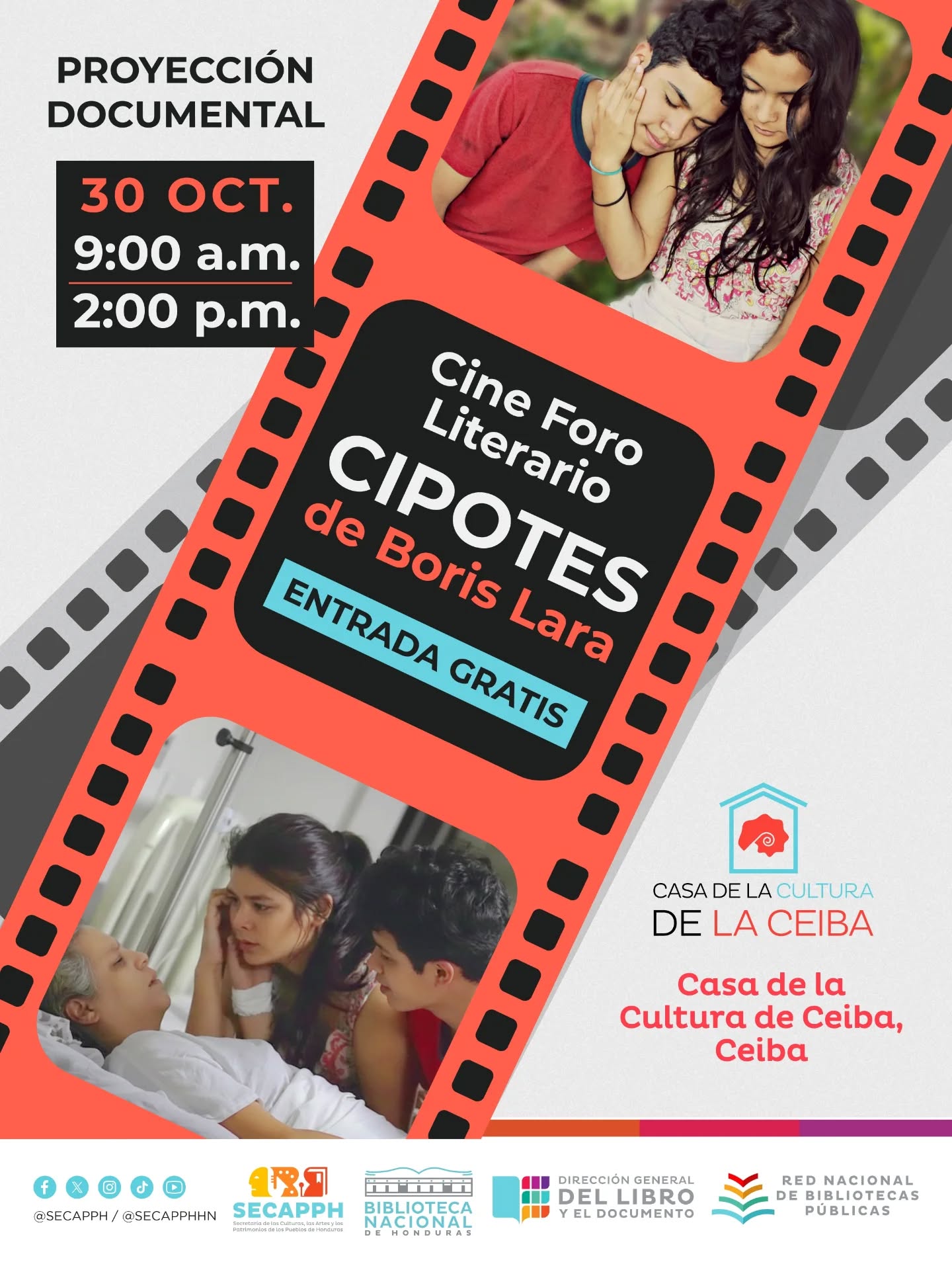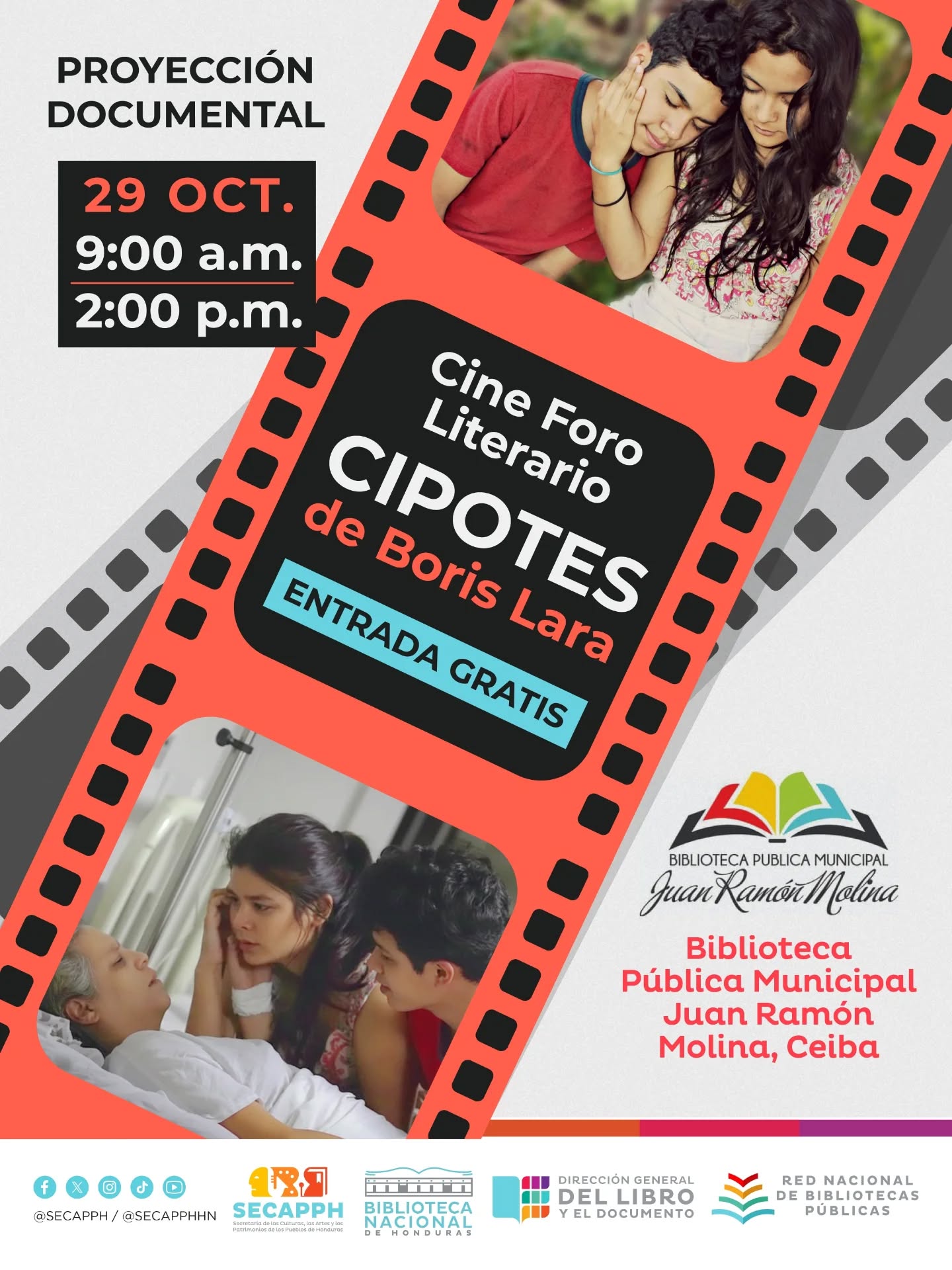 ​La Biblioteca Nacional Juan Ramón Molina y la Red de Bibliotecas Públicas de la SECAPPH te invitan al proyecto: Cine Foro Literario. Un espacio de encuentro con la cultura hondureña en la costa Caribe.