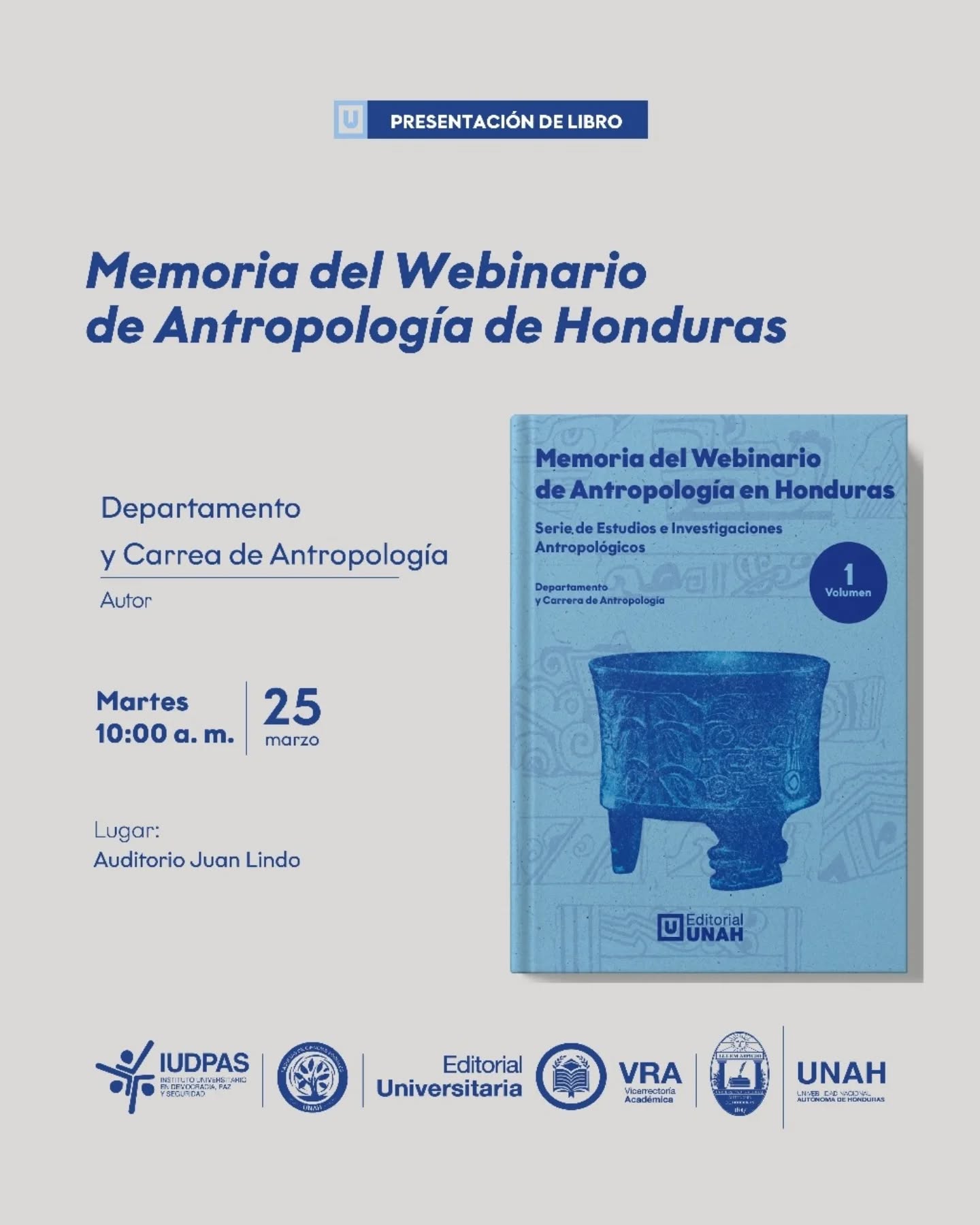 📖 «Memoria del Webinario de Antropología en Honduras. Serie de Estudios e Investigaciones Antropológicas», del Departamento y Carrera de Antropología.