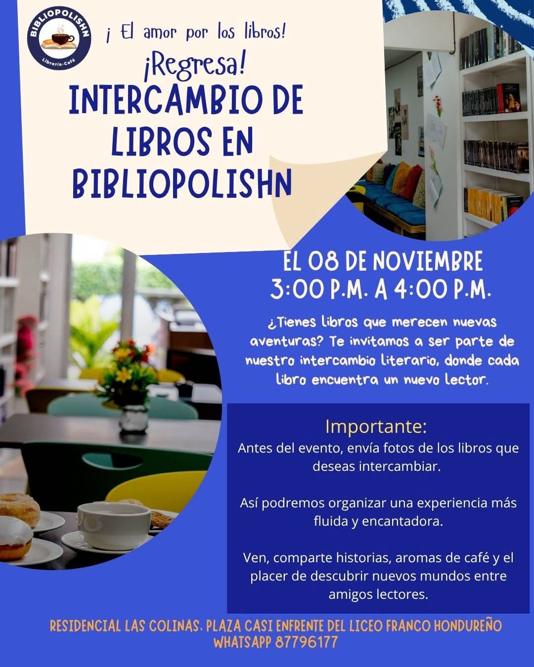 Intercambio de libros en Bibliopolishn Fecha de Inicio Sábado, Noviembre 8, 2025 - 03:00 PM Arte Intercambio de libros en Bibliopolishn