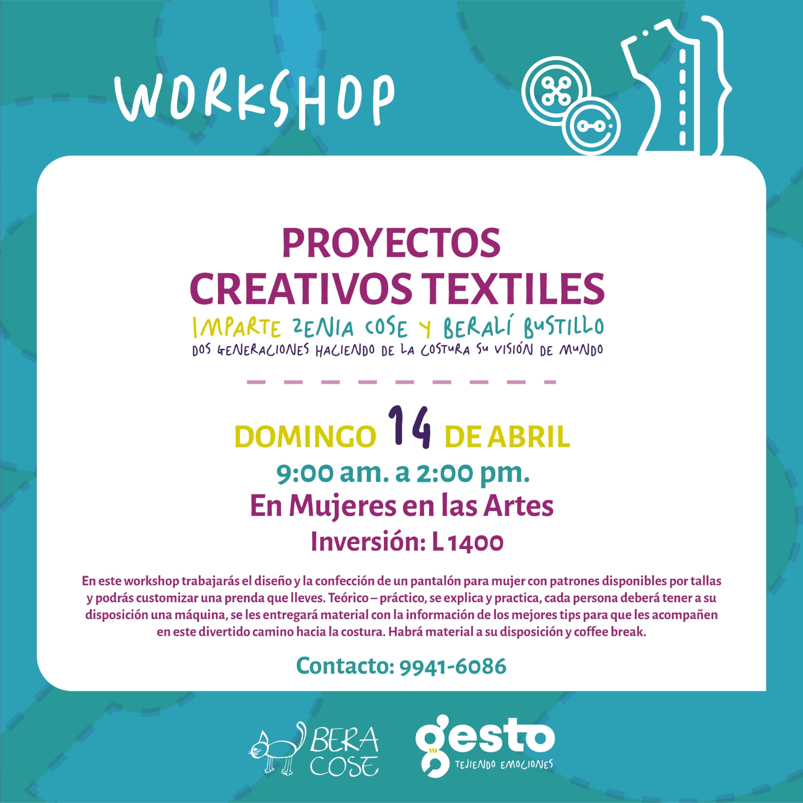 Gesto ~ Tejiendo emociones ~ Te invita a participar de dos talleres: Uno para iniciarse en el mundo de la costura y otro para confeccionar una prenda y customizar otra.