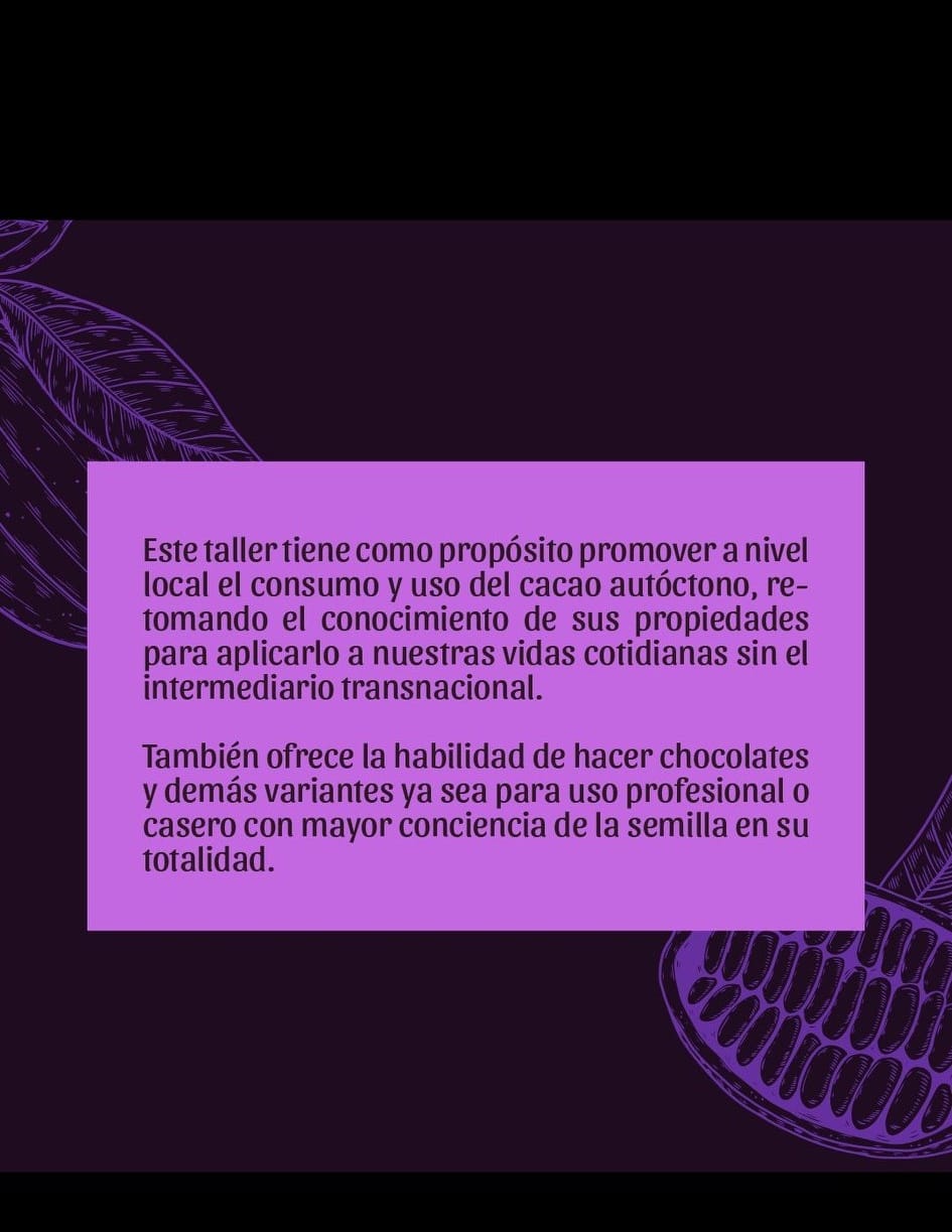 Taller de Cacao Fecha de Inicio Domingo, Febrero 11, 2024 - 10:00 AM Educación y Formación Taller de Cacao