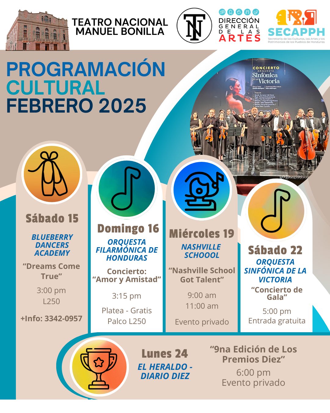 Teatro Nacional Manuel Bonilla: Programación mes de febrero
