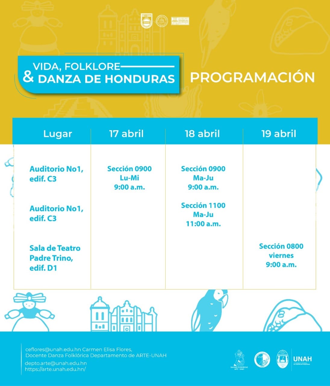 El Departamento de Arte de la Universidad Nacional Autónoma de Honduras invita a la comunidad universitaria y a los amantes del arte a vivir una experiencia alucinante: los exámenes públicos de la asignatura RR-153 Danza Folklórica. Estos se llevarán a cabo en el auditorio #1 del edificio C3, del 17 al 19 de abril.