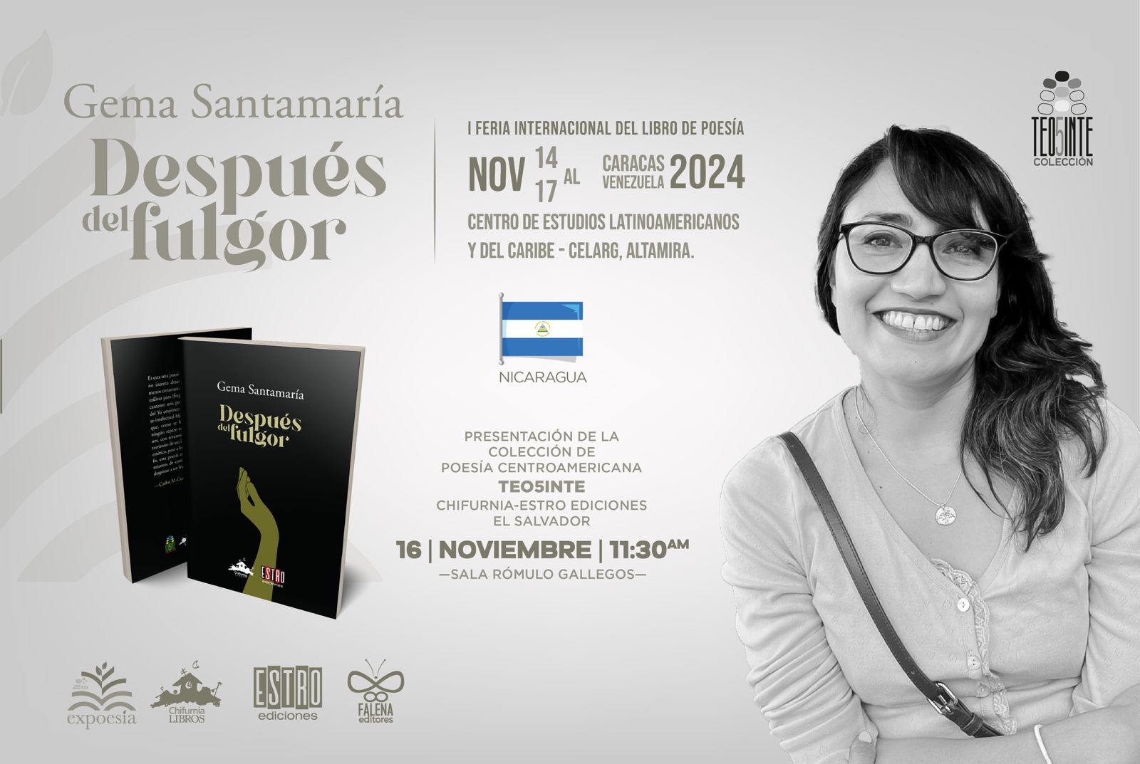 También tendremos la fortuna de presentar, en co-edición con el sello editorial hermano salvadoreño ESTRO, la colección Teo5inte, de poesía centroamericana, con los títulos