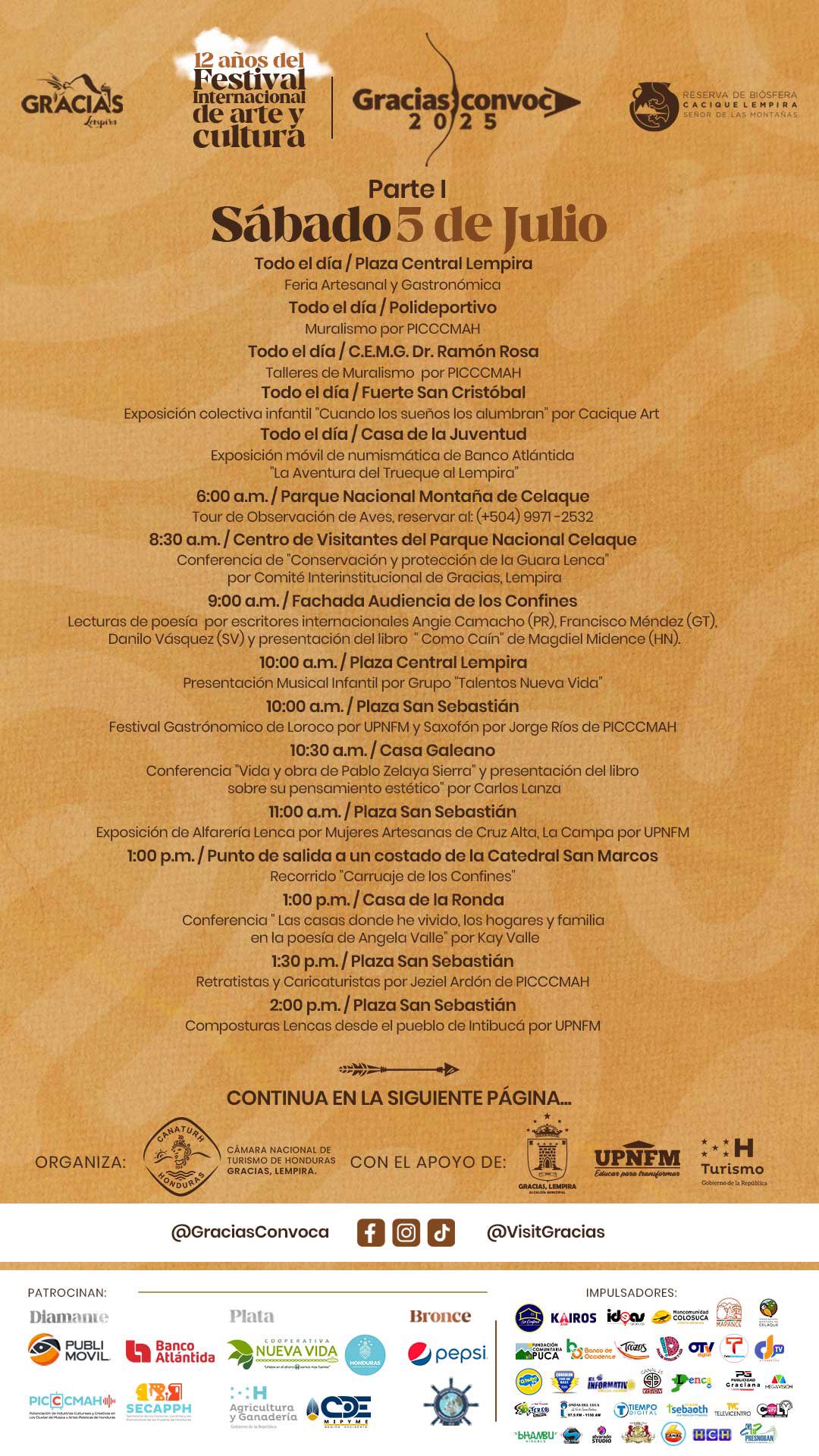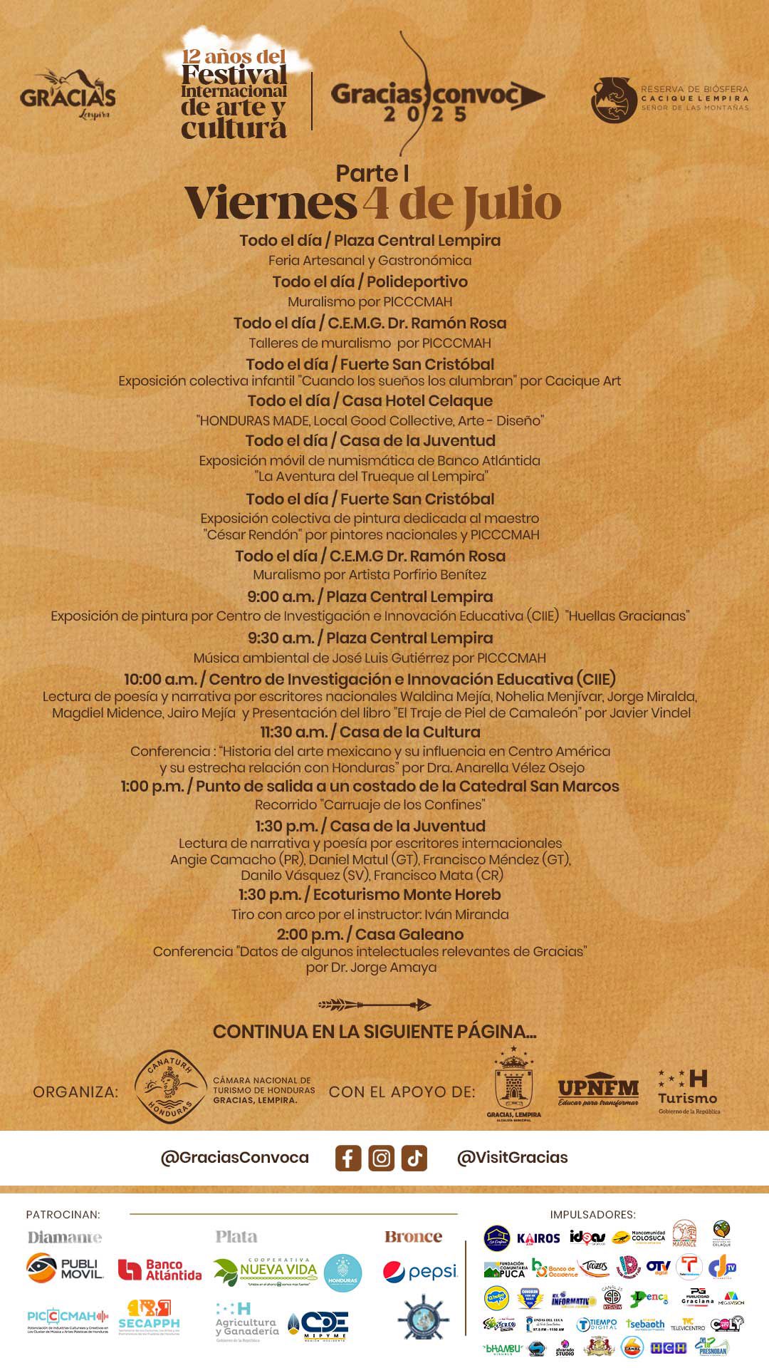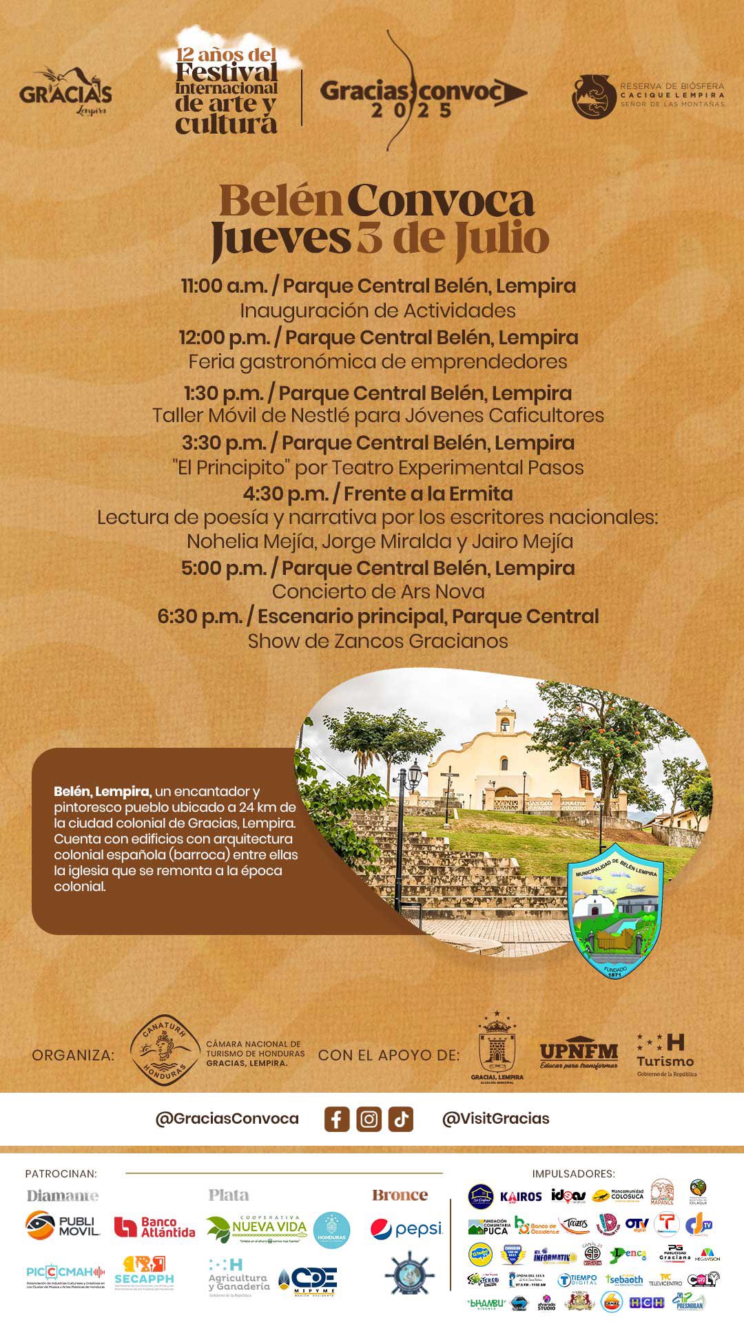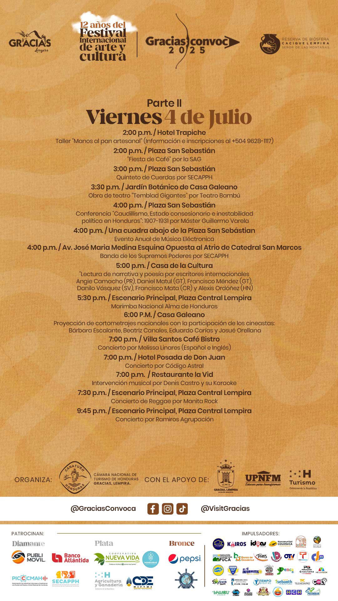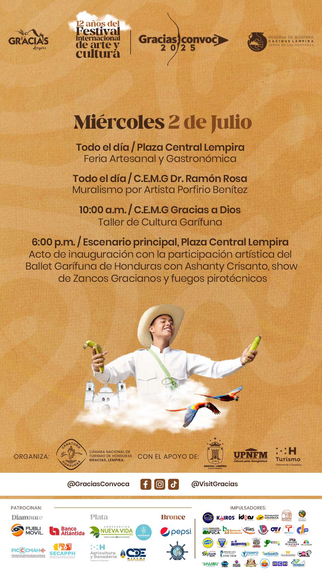 Prepárate para vivir días intensos de arte, cultura y encuentros inolvidables en el corazón de Gracias, Lempira. Desde lo mejor de nuestra gastronomía hasta música en vivo, danza, cine y espacios de reflexión, este año superamos todos los límites.