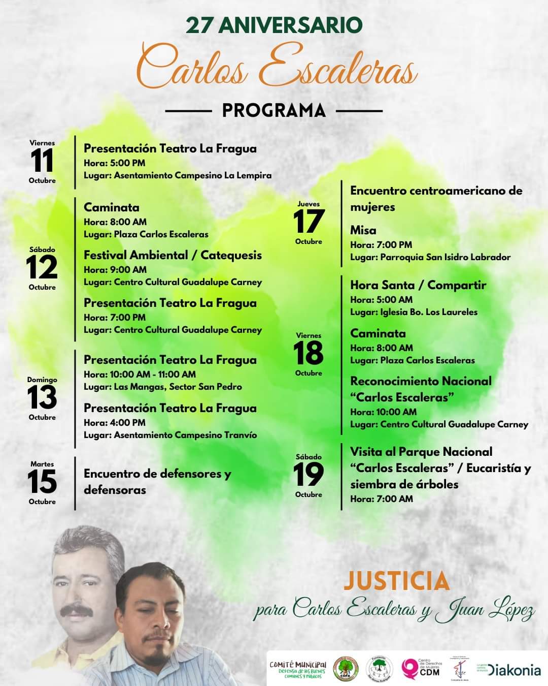 4. La ceremonia de reconocimiento a las diversas luchas nominadas se realizará el viernes 18 de octubre en la ciudad de Tocoa, en el marco de una semana de conmemoración en honor a Carlos Escaleras.