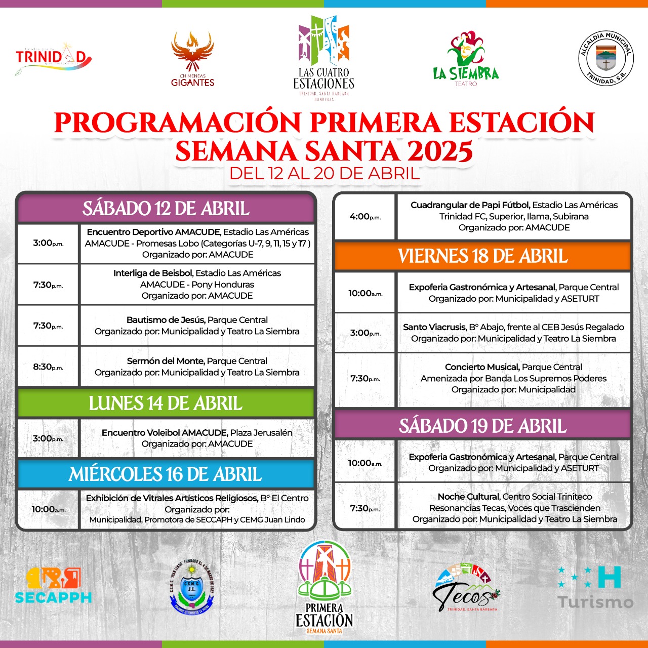 Del 12 al 20 de abril, el municipio de Trinidad, Santa Bárbara. Se transforma con la “Primera Estación” 2025, un evento que forma parte del proyecto cultural “Las Cuatro Estaciones” y que ofrece una programación única para disfrutar en familia.